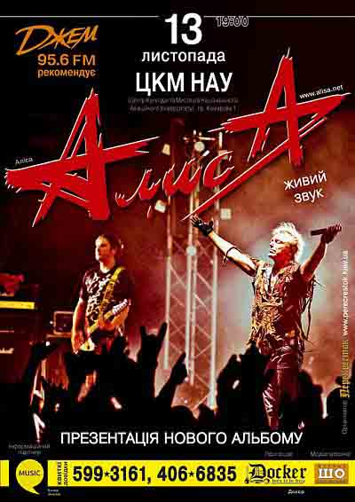 Концертное агенство "Perecrestok" представляет: Группа Алиса и Константин Кинчев в Киеве,